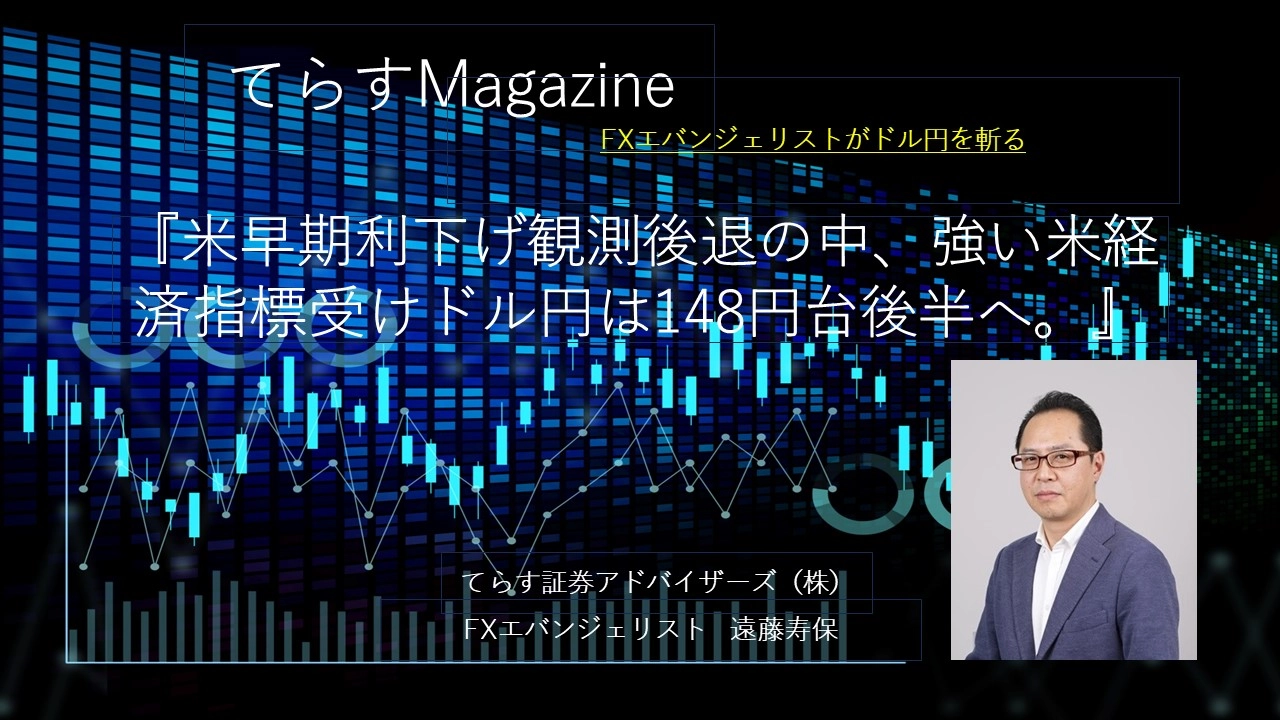 米早期利下げ観測後退の中、強い米経済指標受けドル円は148円台後半へ。