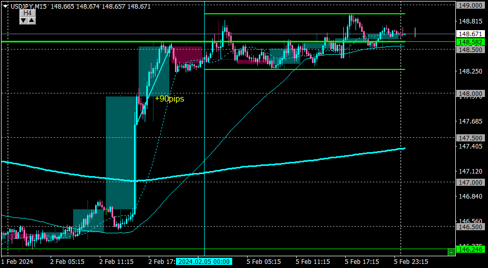 昨日は、朝の想定通り148.50付近で揉み合いになったのでノートレード。