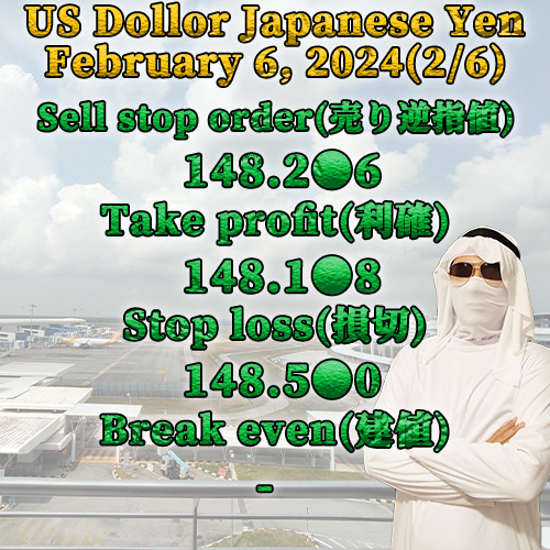 19年間無敗・勝率77%・平均月利27%【八条流FX完全無裁量脳死トレード手法】の2024/2/6のUSDJPY(ドル円)の先出し相場予想です。