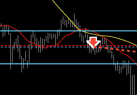 1時間足、すでに下げた後ですが、ma攻防で押さえられるなら下落継続とも考えられるので、