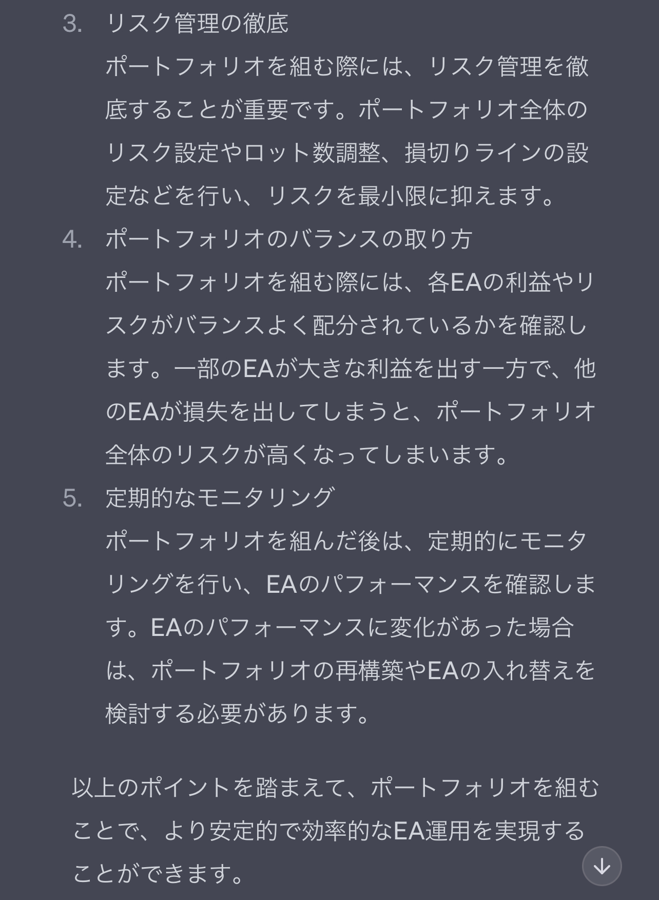 2/10【ChatGPT】EA運用において、ポートフォリオを組む秘訣を教えて下さい。