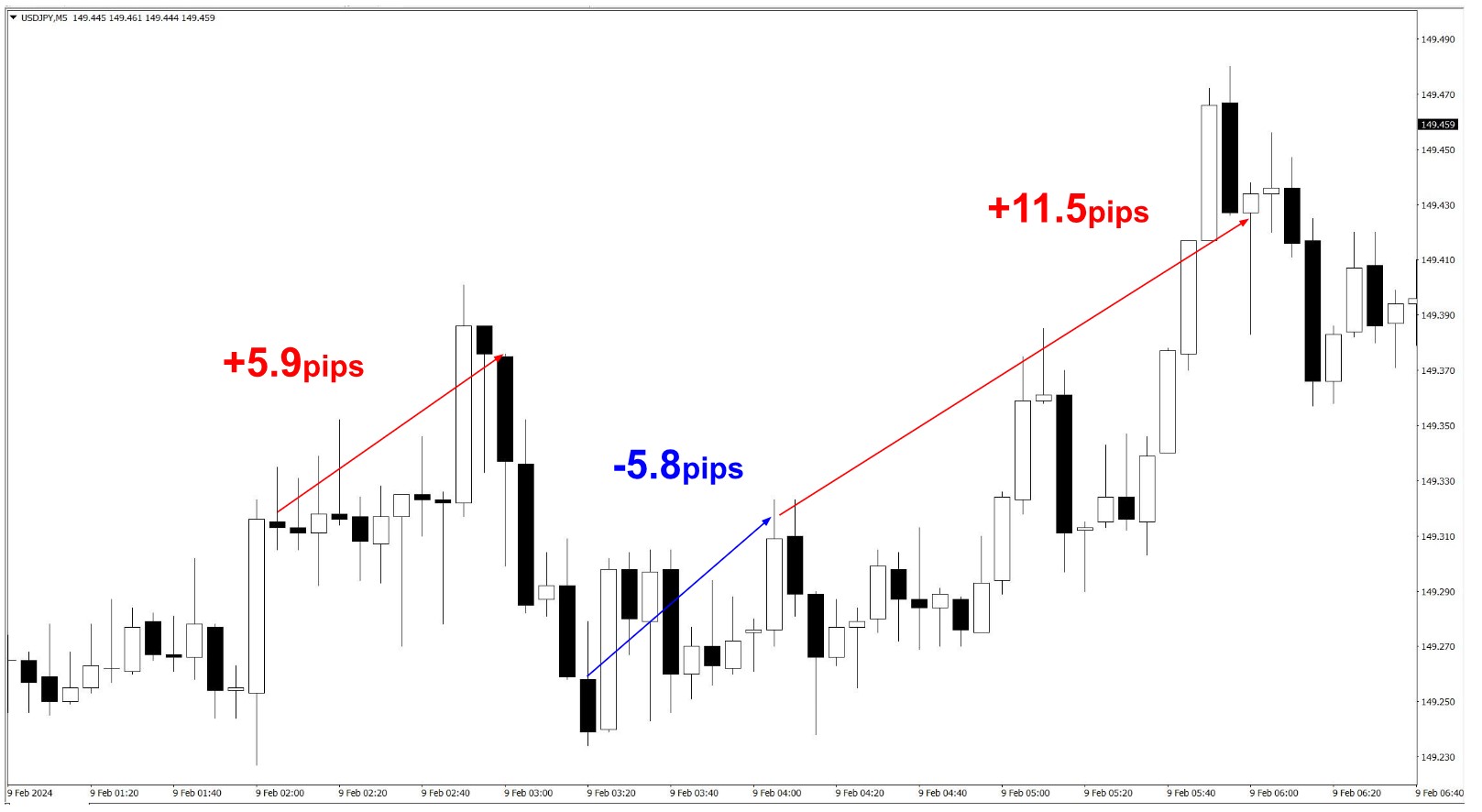 当然レンジ相場なので、大きなpips数を取ることは物理的に不可能ですが、