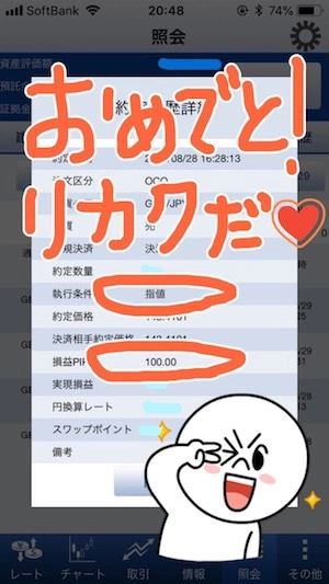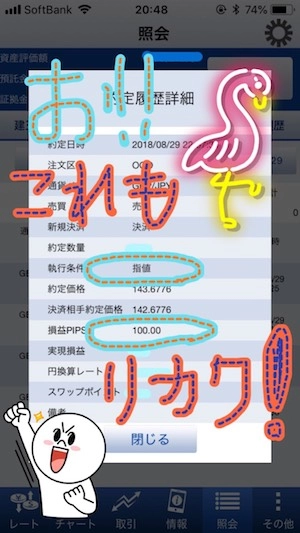 → 利食いは100pips、損切りは90pipsでOCOでセット