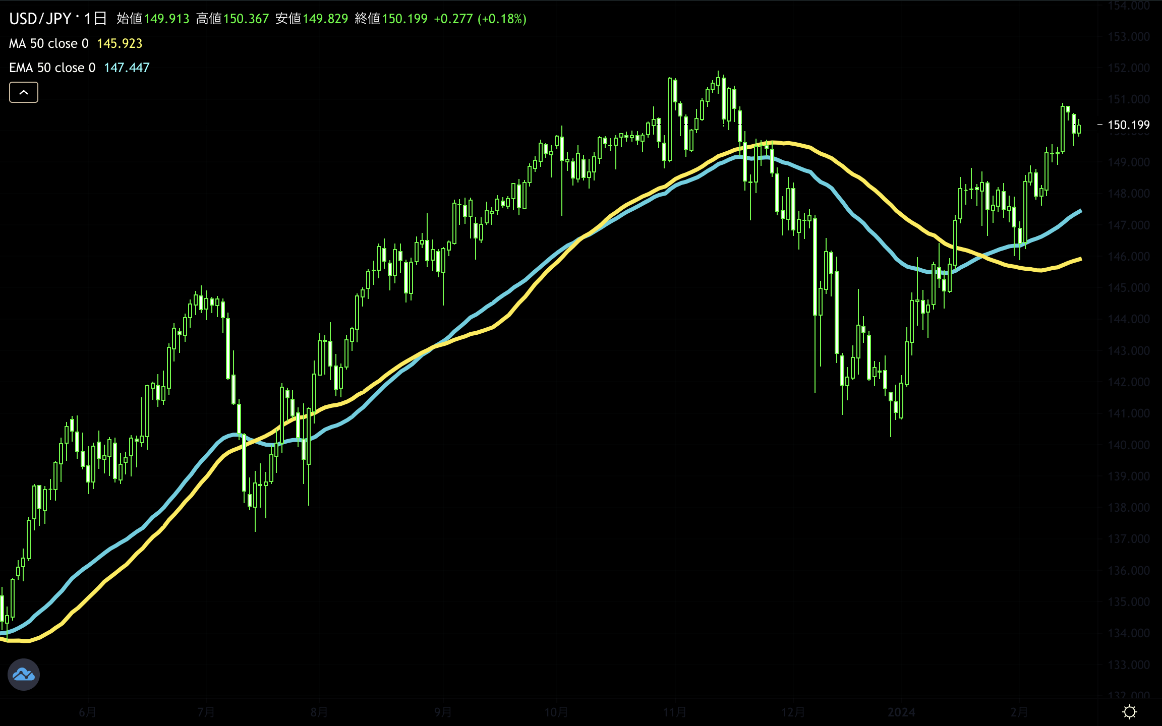 「価格の重みが指数関数的に減っていき、SMAよりも滑らかに動くから」