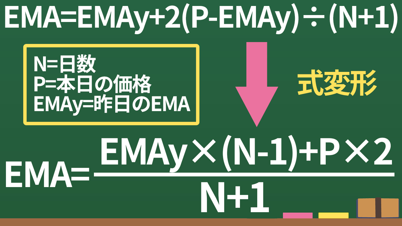 本日のEMA={昨日のEMA×(N-1)+本日の価格×2}÷(N+1)