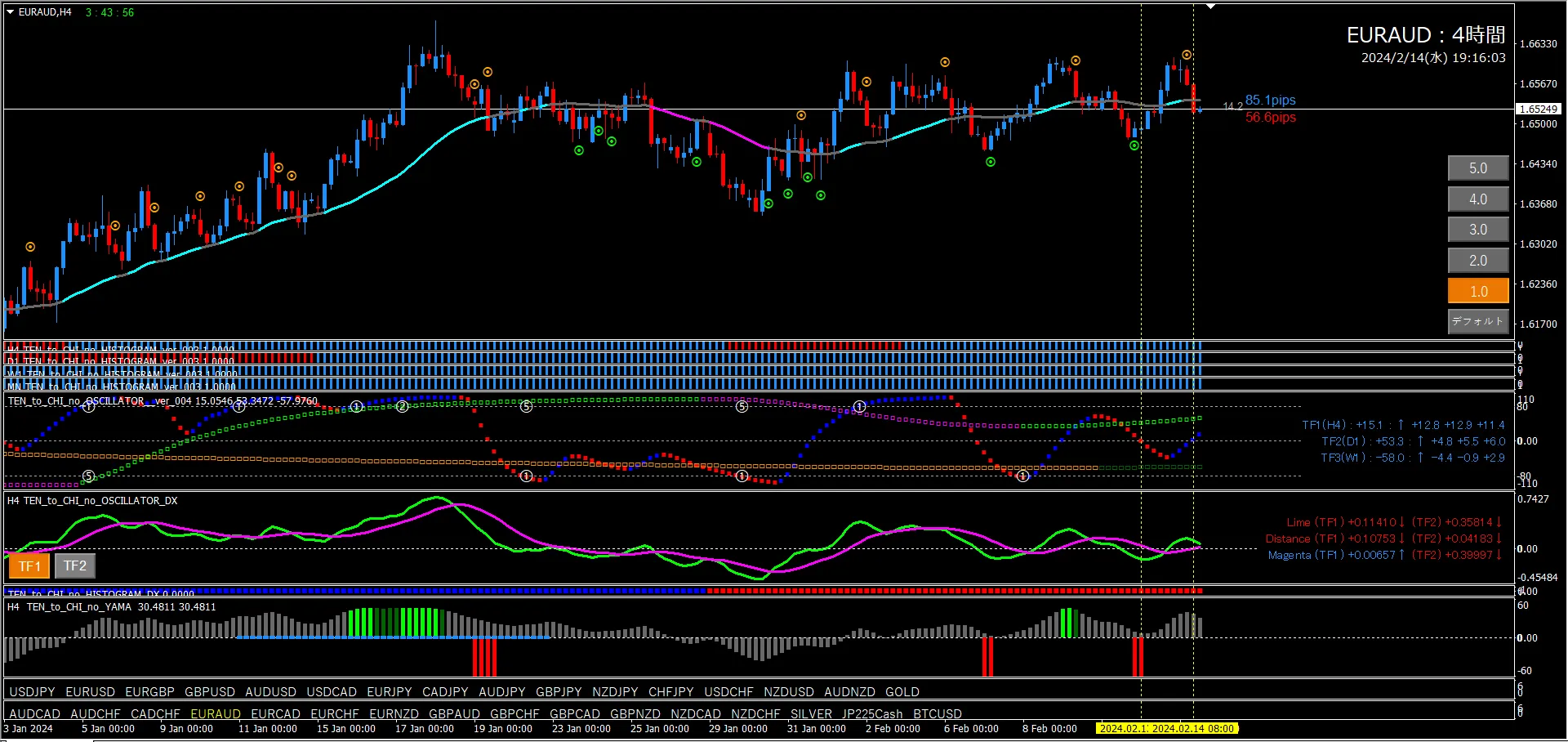 【2024年2月14日】天と地のインジケーターを使用した過去検証(ユロオジ)