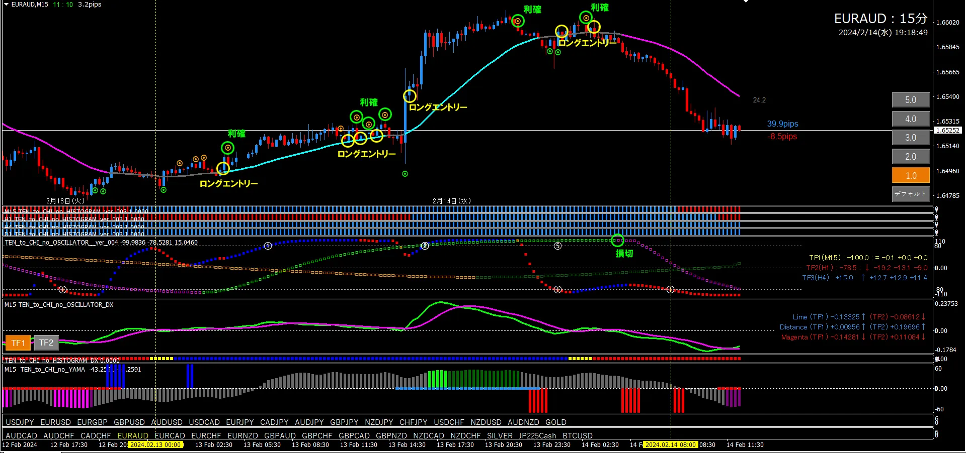 ユロオジ 15分足+4時間足 過去検証(2024年2月13日~2月14日)