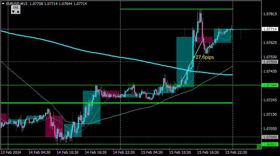 昨日は朝のシナリオ通り、1.0733の戻り目のWトップが崩れたタイミングでロング。+27.6pips