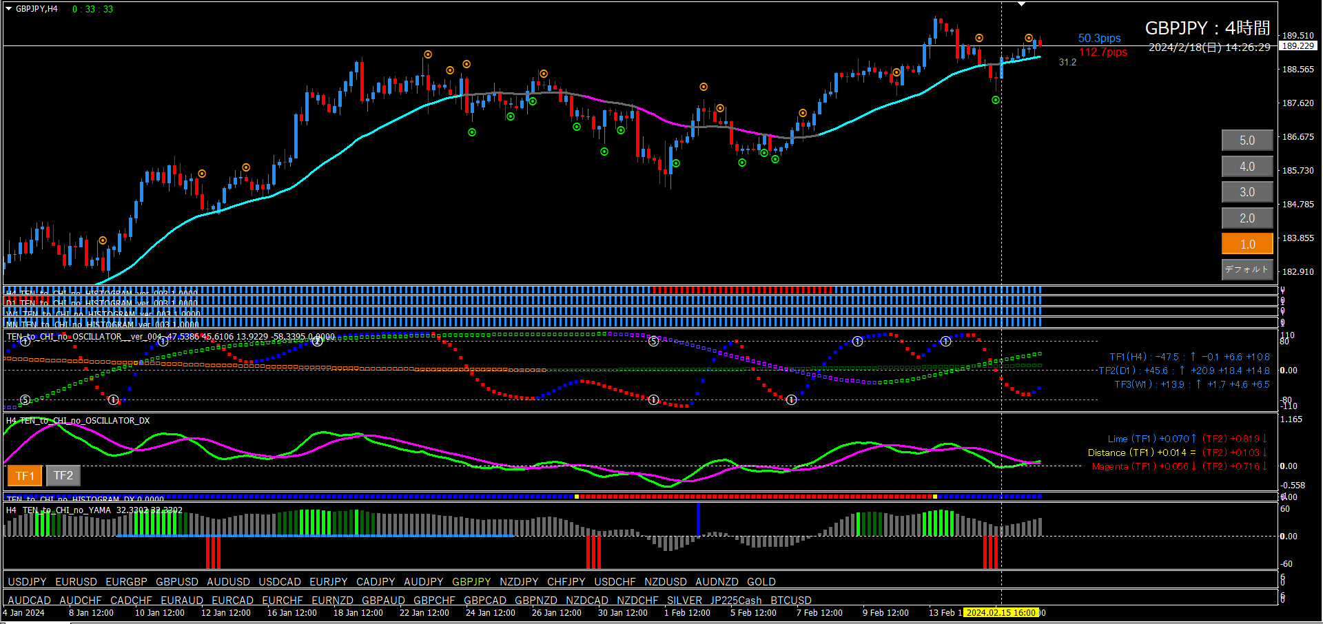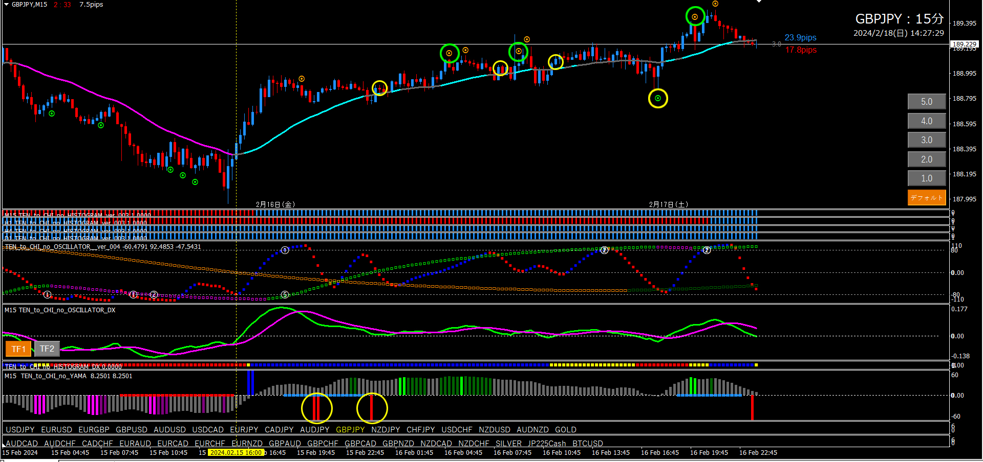 【2024年2月18日】天と地のインジケーターを使用した過去検証(ポン円)