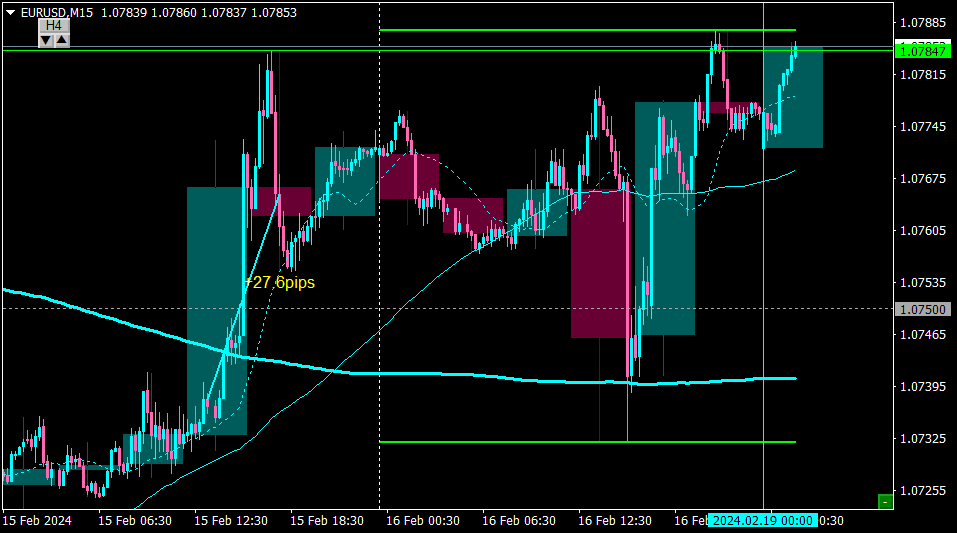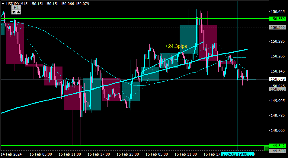 前日高値で上げ止まってしまったのでイグジット。金曜なので節目をブレイクする力はなかった様子。+24.3pips
