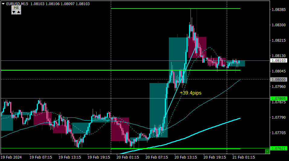 節目と見ていた1.080をブレイクしたのでホールドしたが、大きく下げたためイグジット。+39.4pips