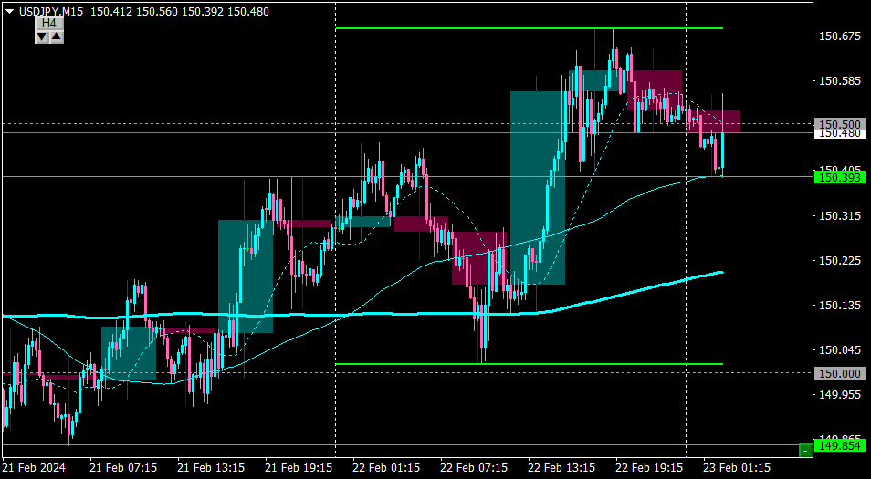 昨日は三角持ち合いを抜けたかに思えたが、150.50のレジスタンスがあったためノートレード。