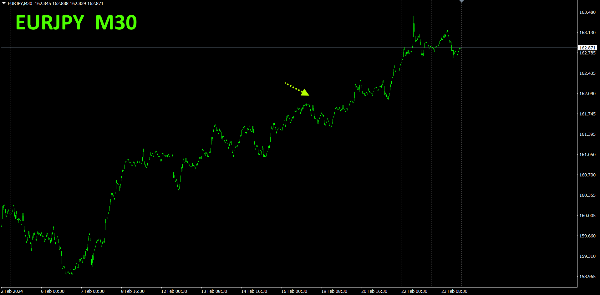 赤色の矢印がスクリーンショットを撮影した所です。急上昇している所を捉えています。
