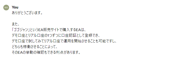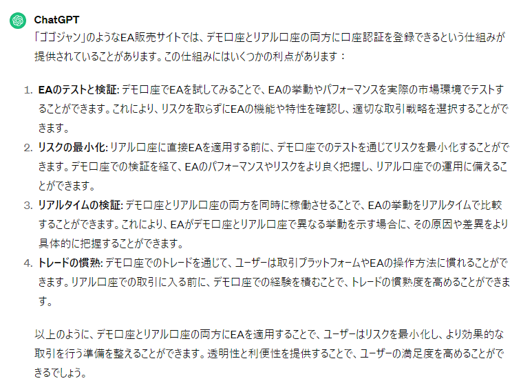 3/15【ChatGPT】ゴゴジャンEAはデモとリアルで同時に稼働できる