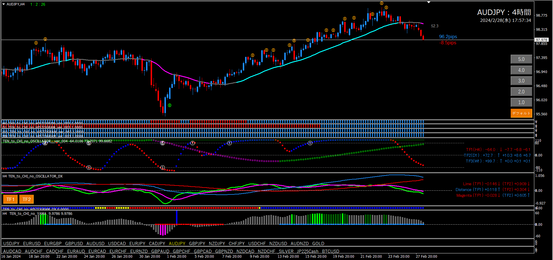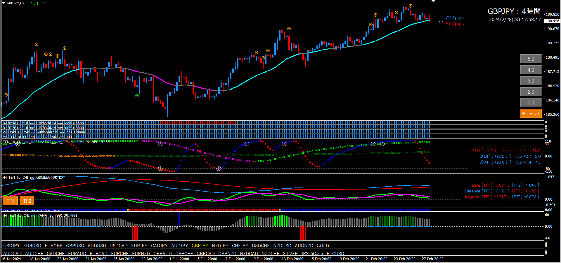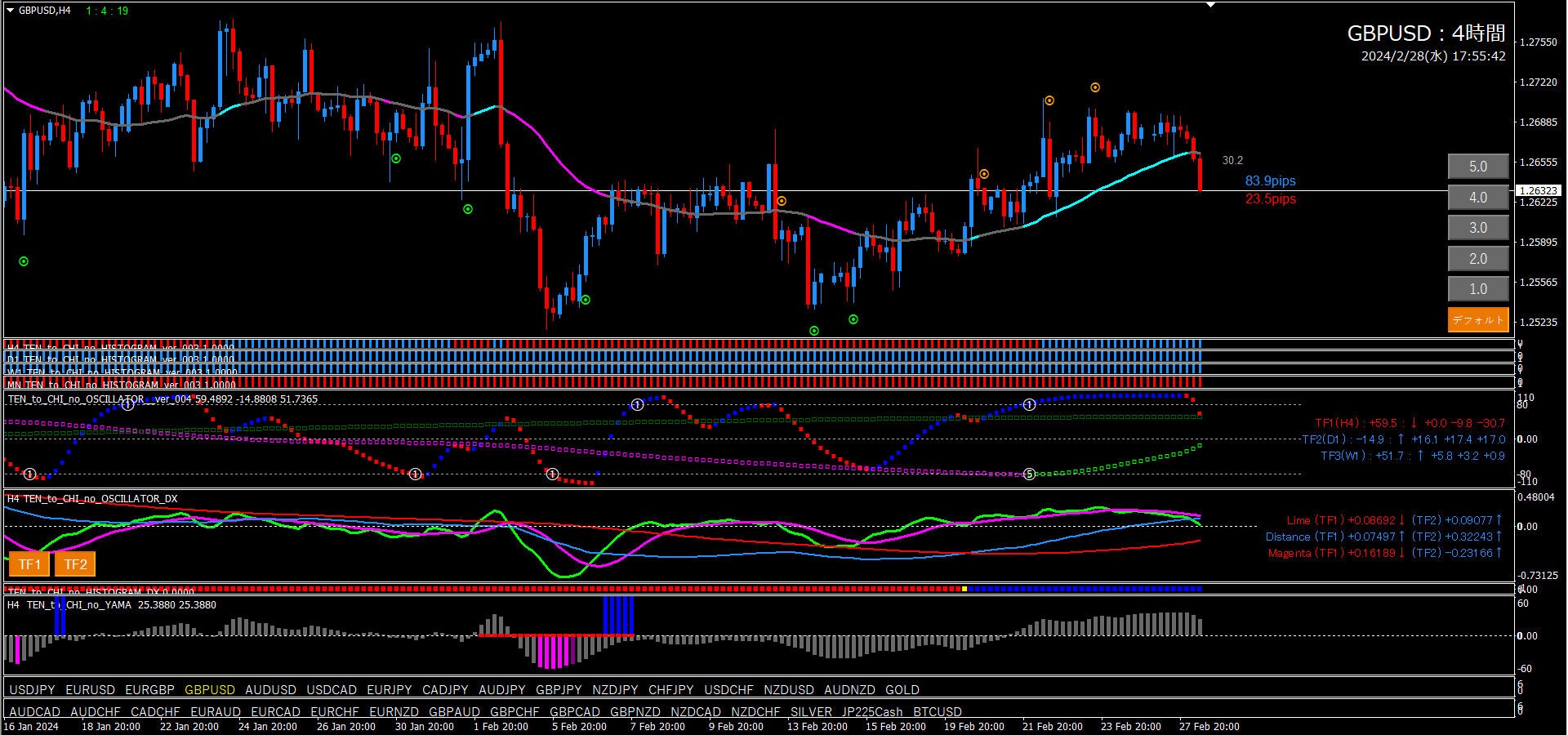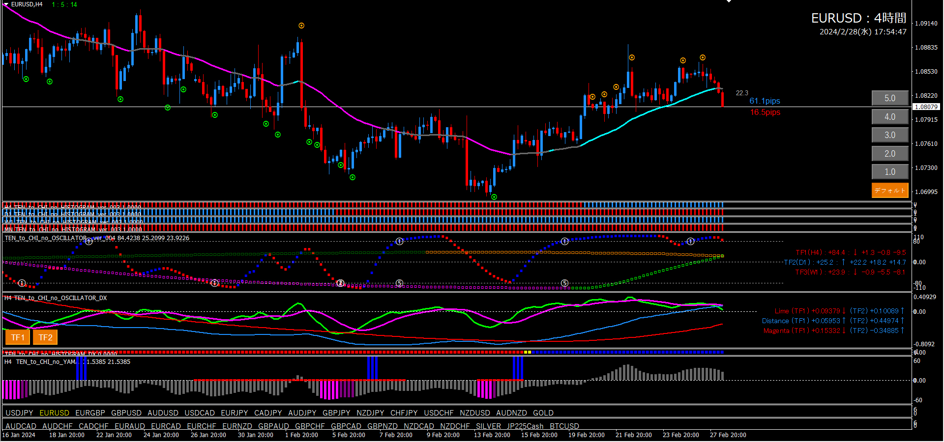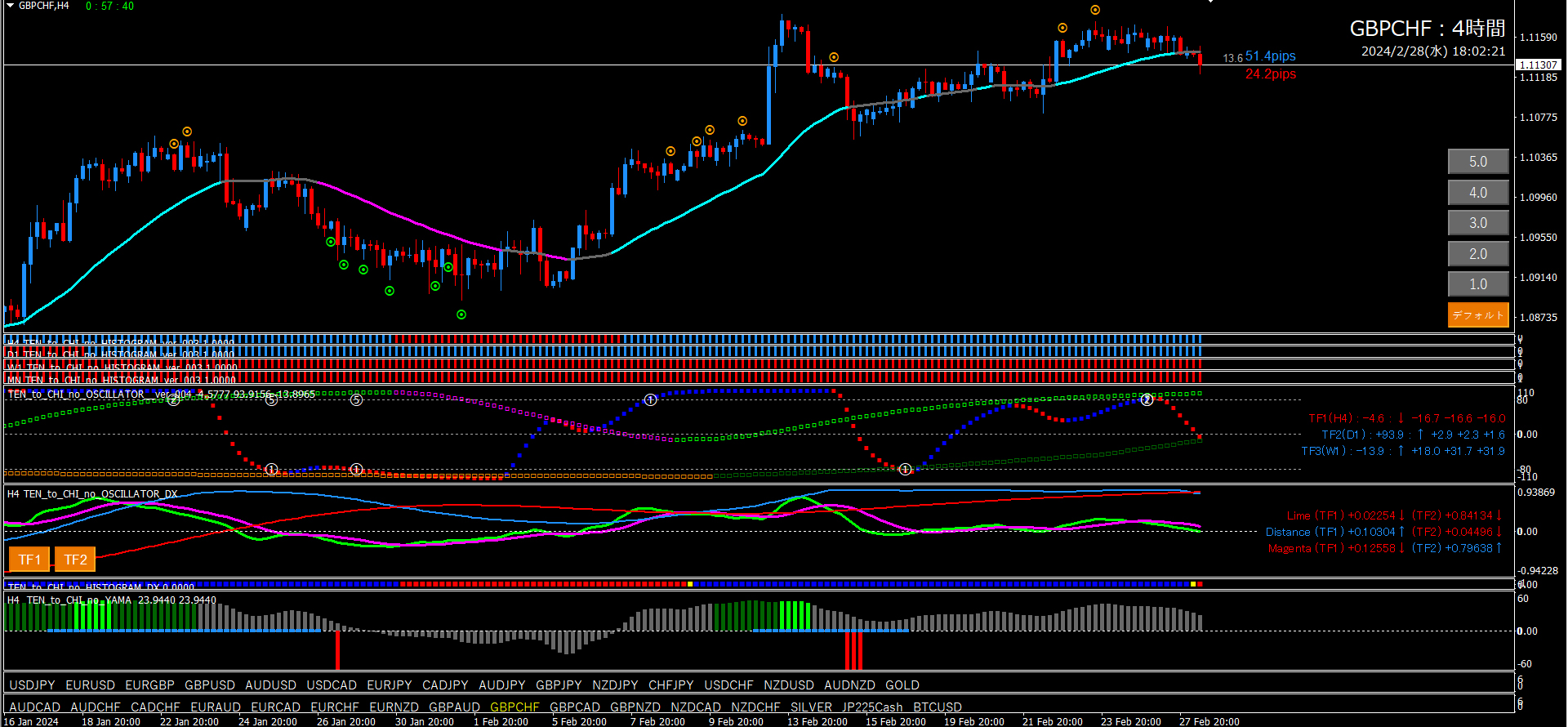 【2024年2月28日】天と地のインジケーターを使用したチャート考察(11通貨ペア)
