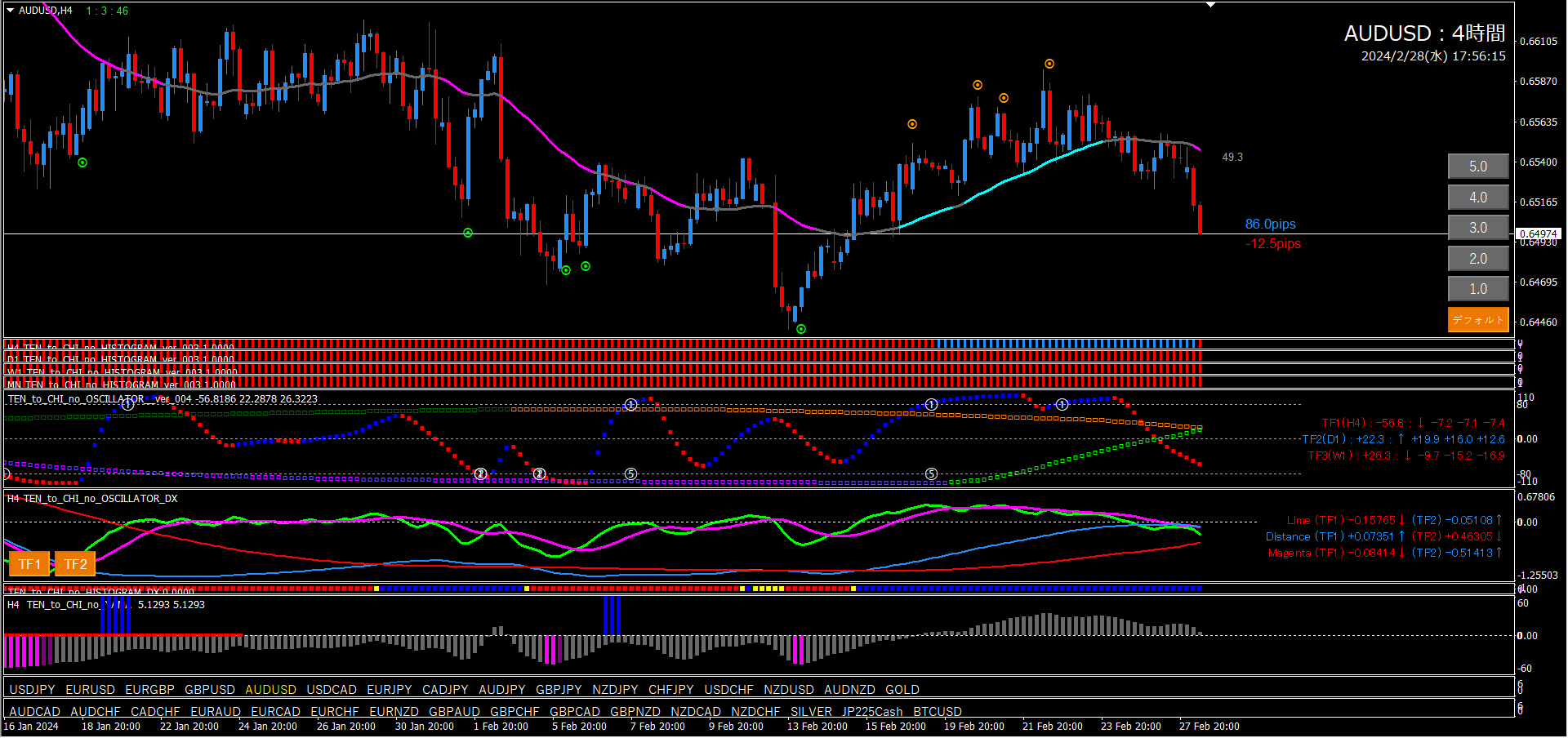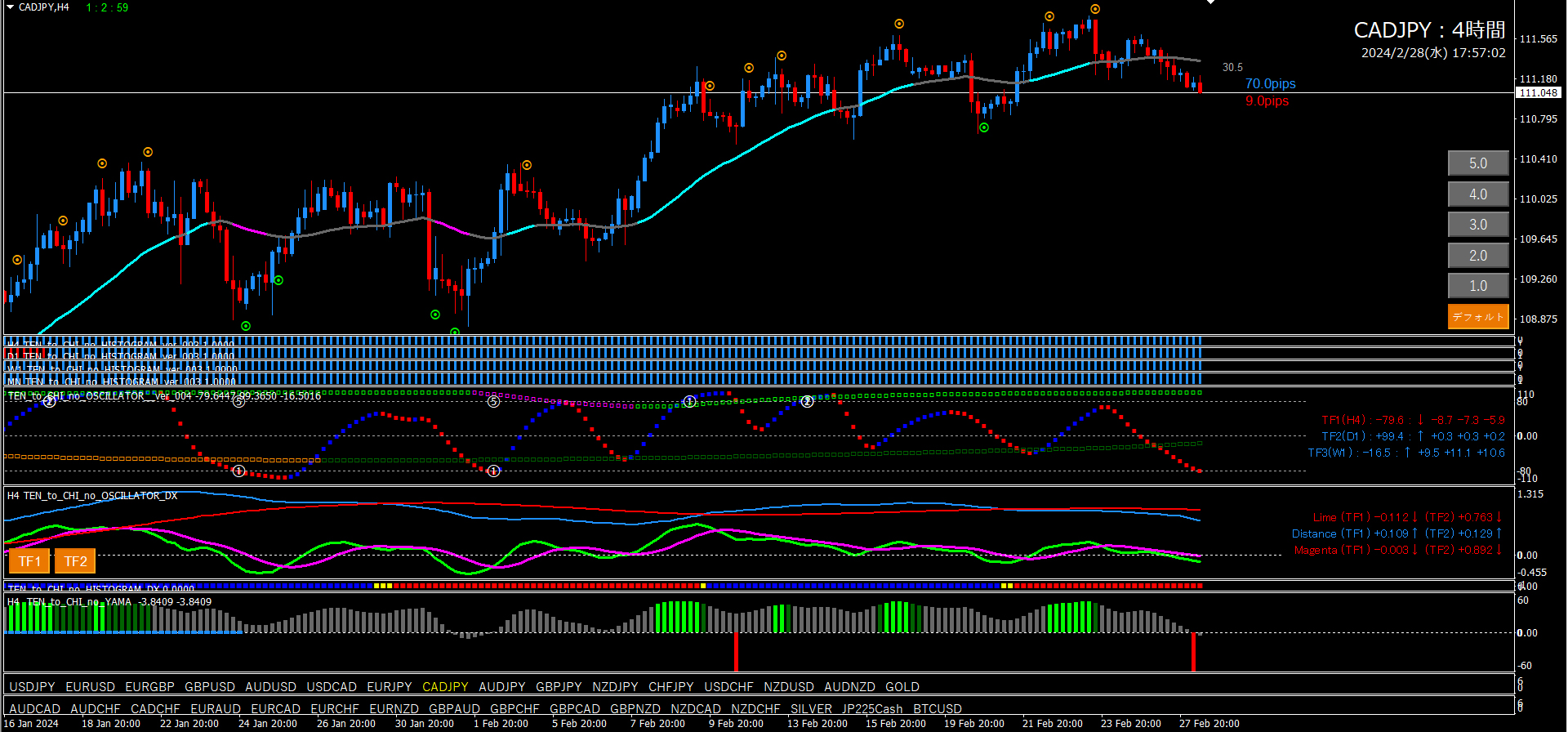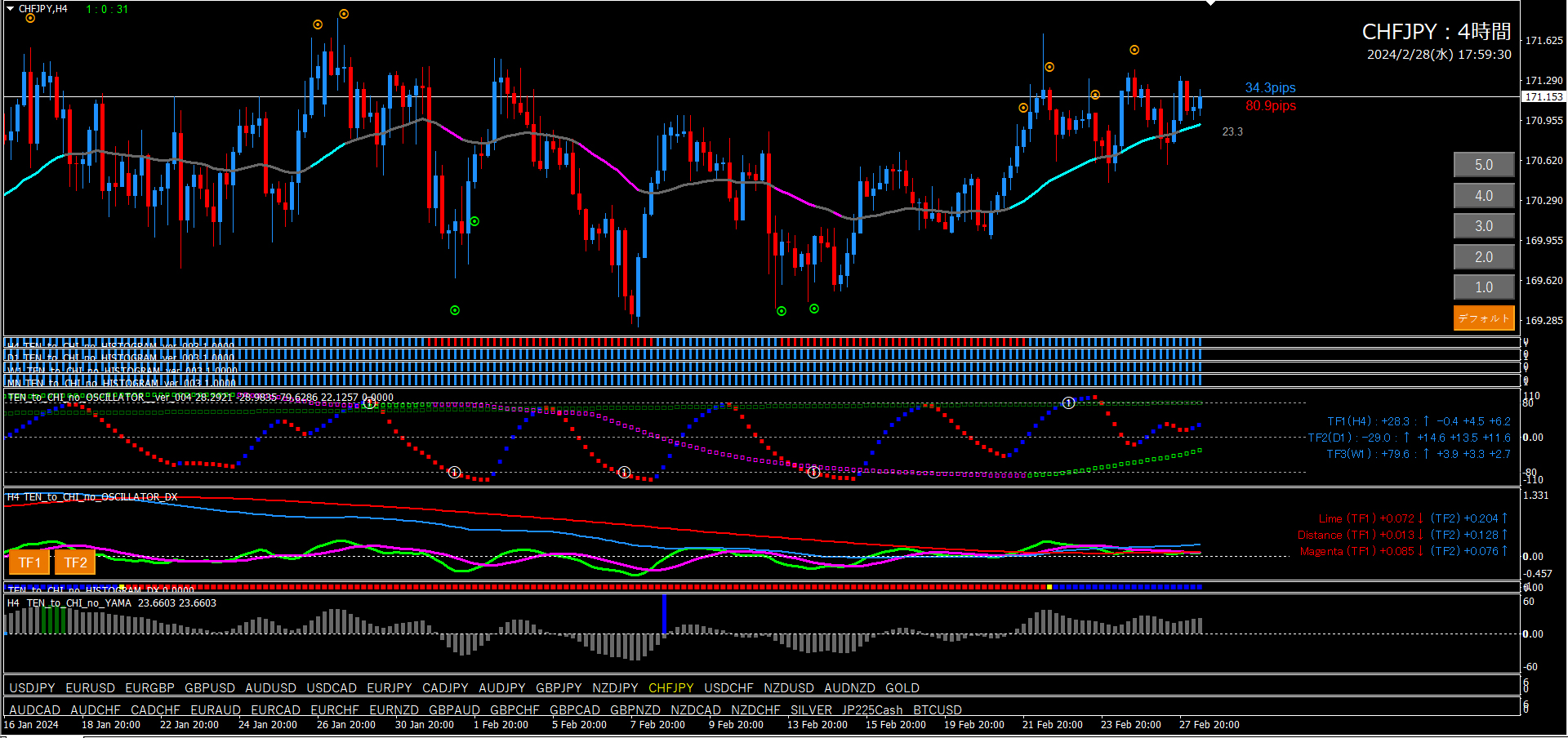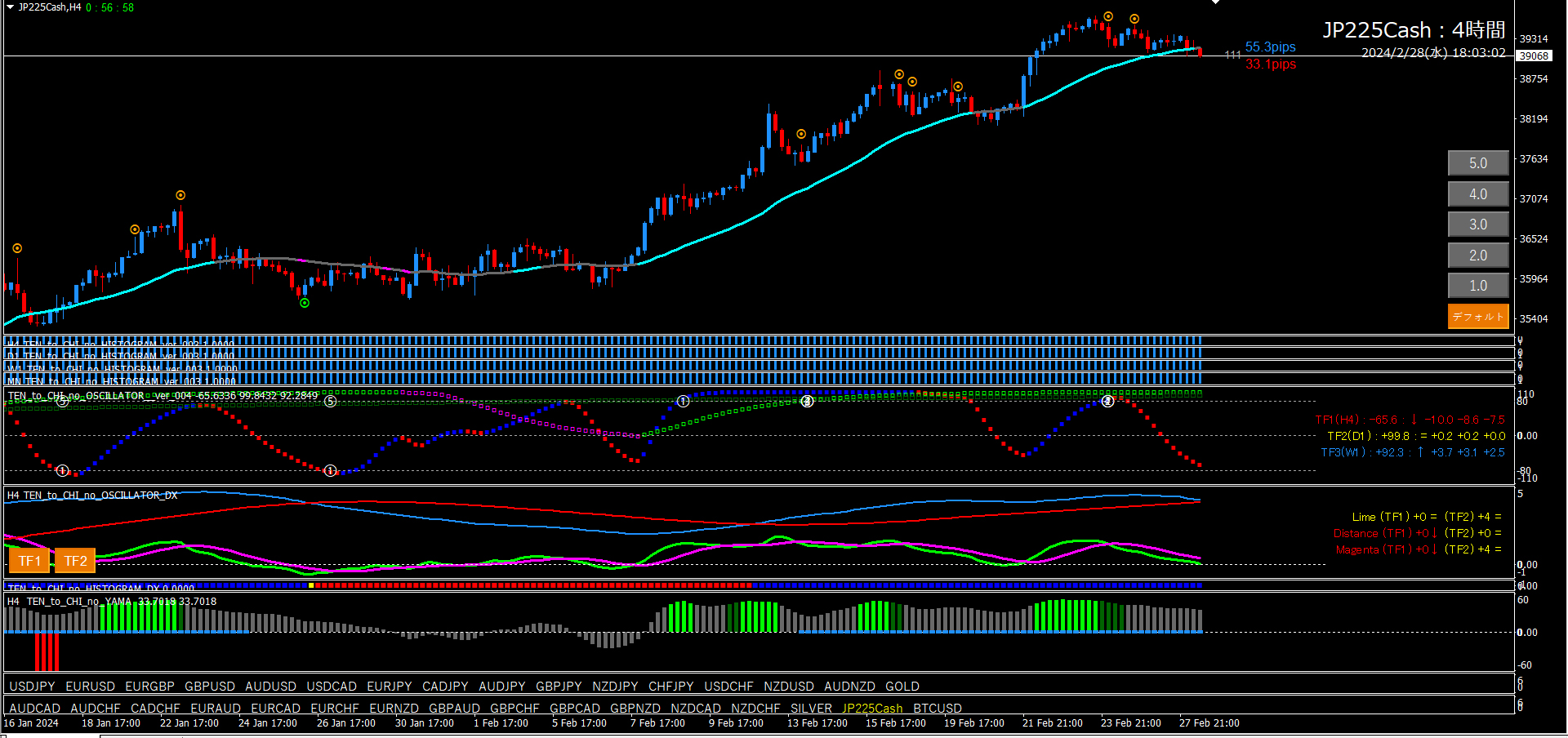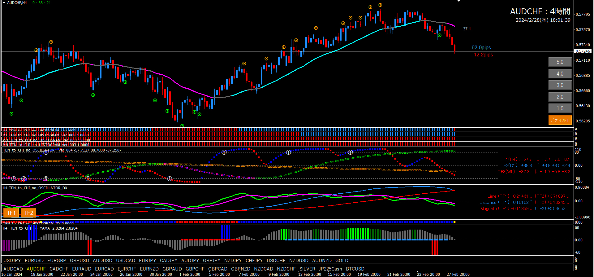 【2024年2月28日】天と地のインジケーターを使用したチャート考察(11通貨ペア)