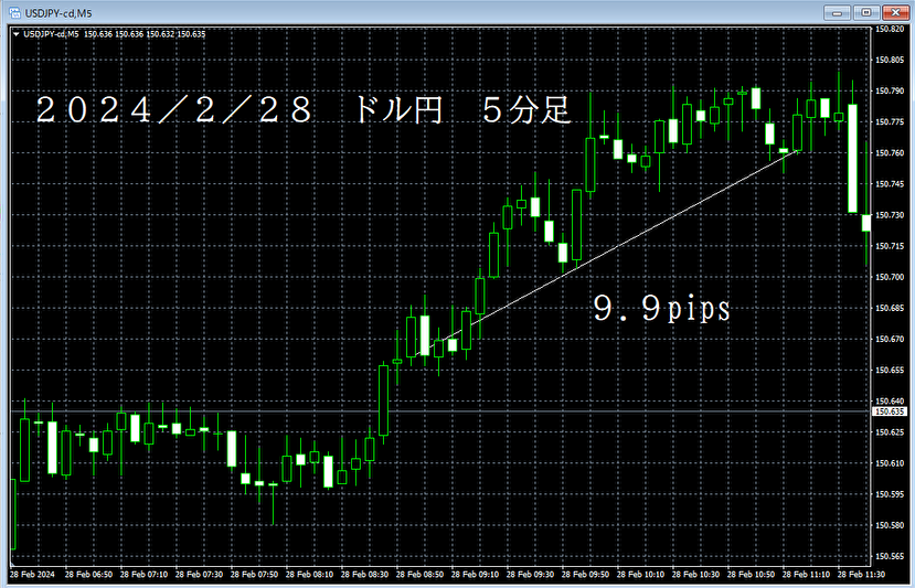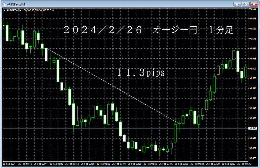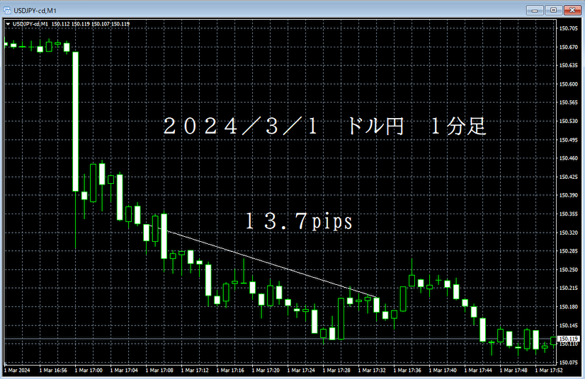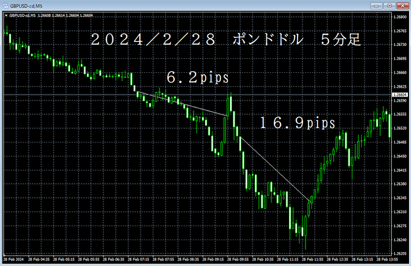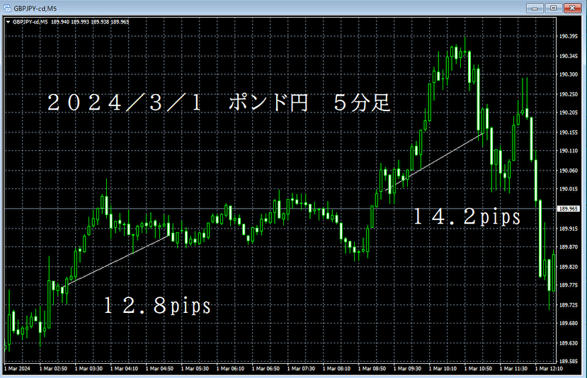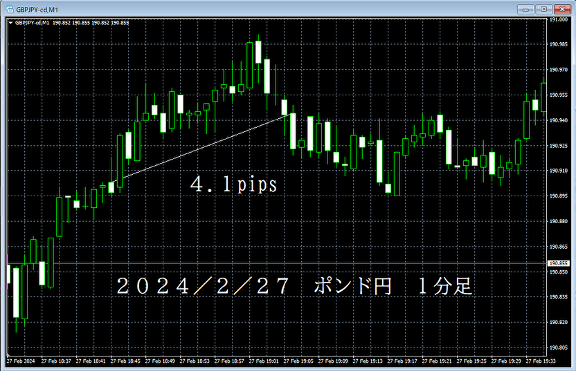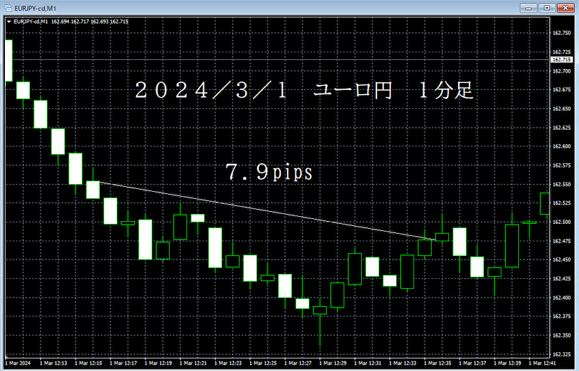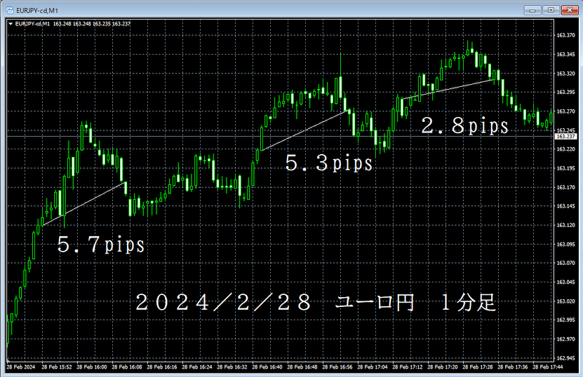 特に1分足や5分足などのスキャルピングではこのレンジブレイクは強力なトレンドを発生させるので特筆です