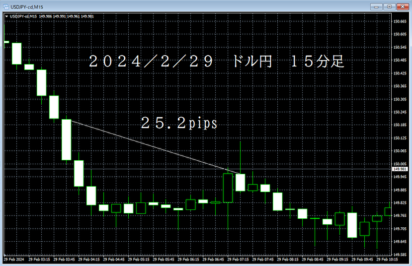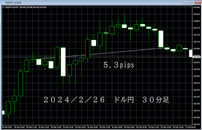 また、手法部分にあたる移動平均線などのテクニカル指標はここではお見せできないため非表示となっています