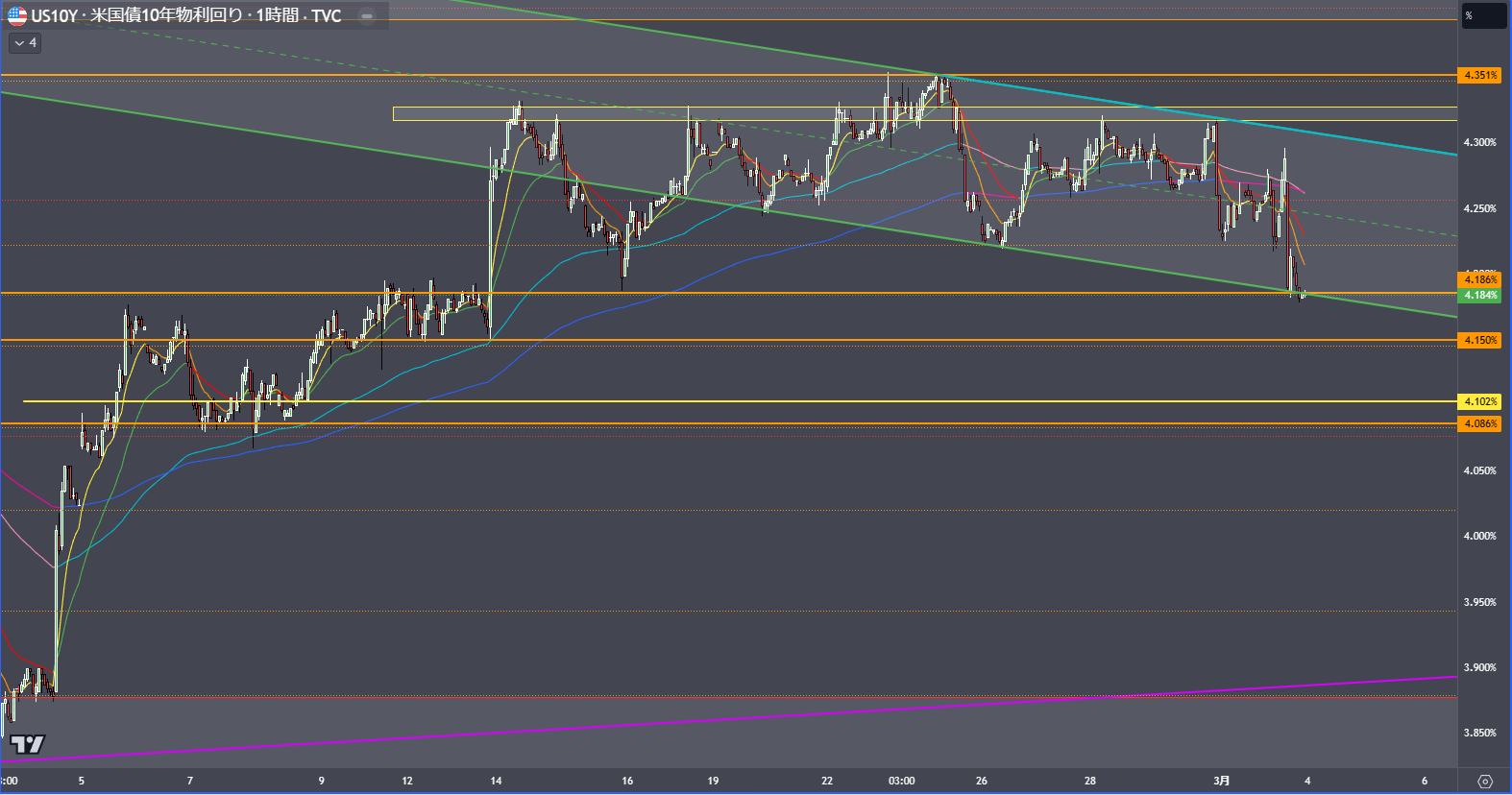 この水準を割ってくると4.1%付近までの低下が見えてきます。
