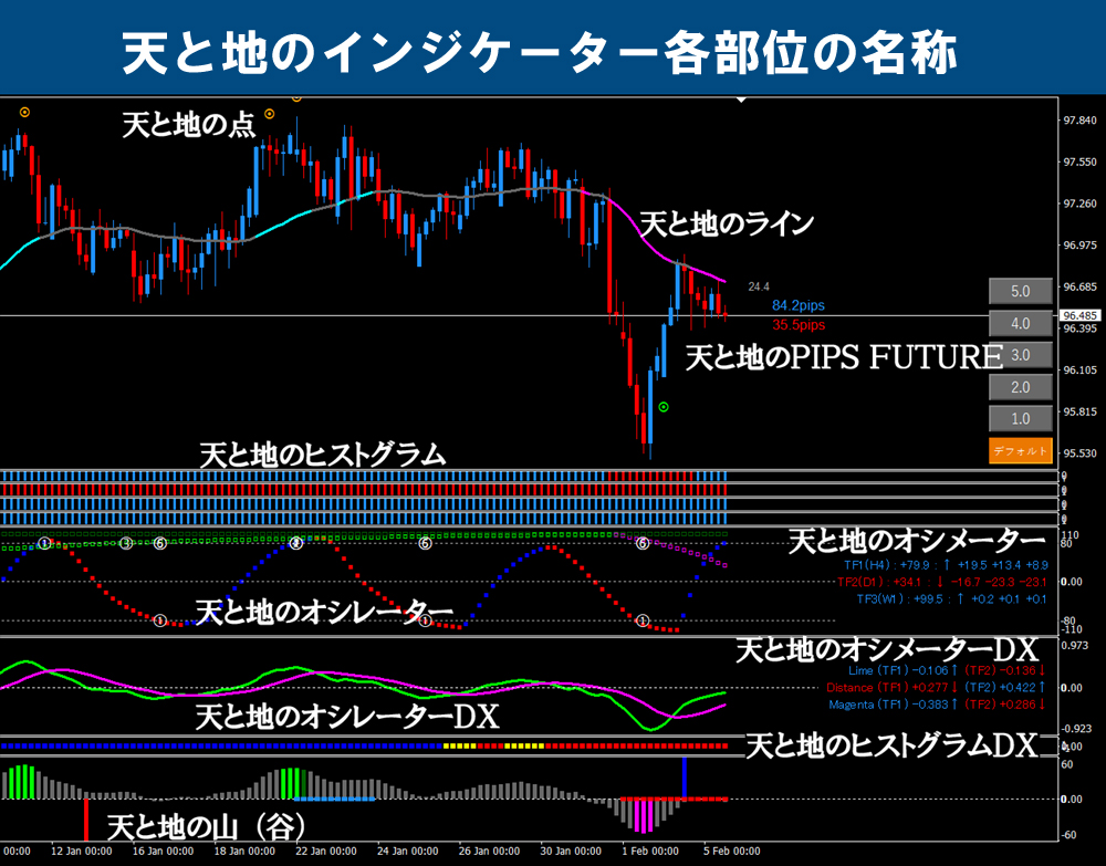 ※本ブログで使用している専門用語については、下記の「天と地のインジケーターの各部位の名称」と「天と地のオシレーターのパターンについて」をご参照ください。他にもご不明点などございましたら天と地のインジケーターの販売ページをご参照していただければ大体は分かると思います。既にユーザーの方は取扱説明書を読めば問題ないですよね。