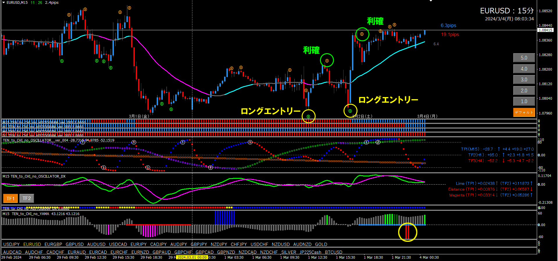 【2024年3月4日】天と地のインジケーターを使用した過去検証(ユロドル)