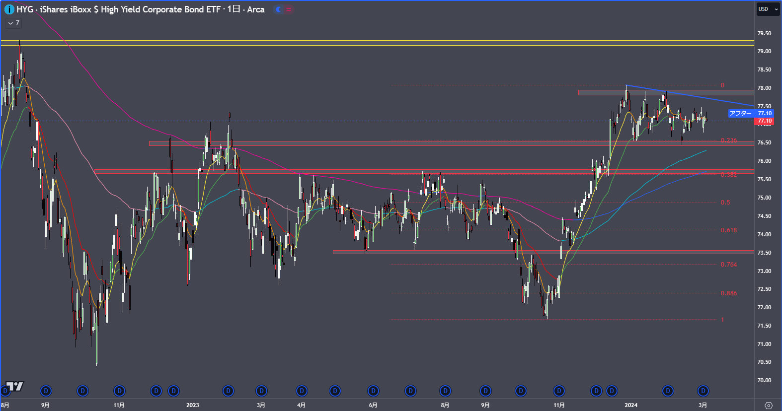 ただしハイイールド債が売り込まれていないことを見るとパニックが起きるようなリスクオフではなさそうであくまで個別株要因のが大きいです。
