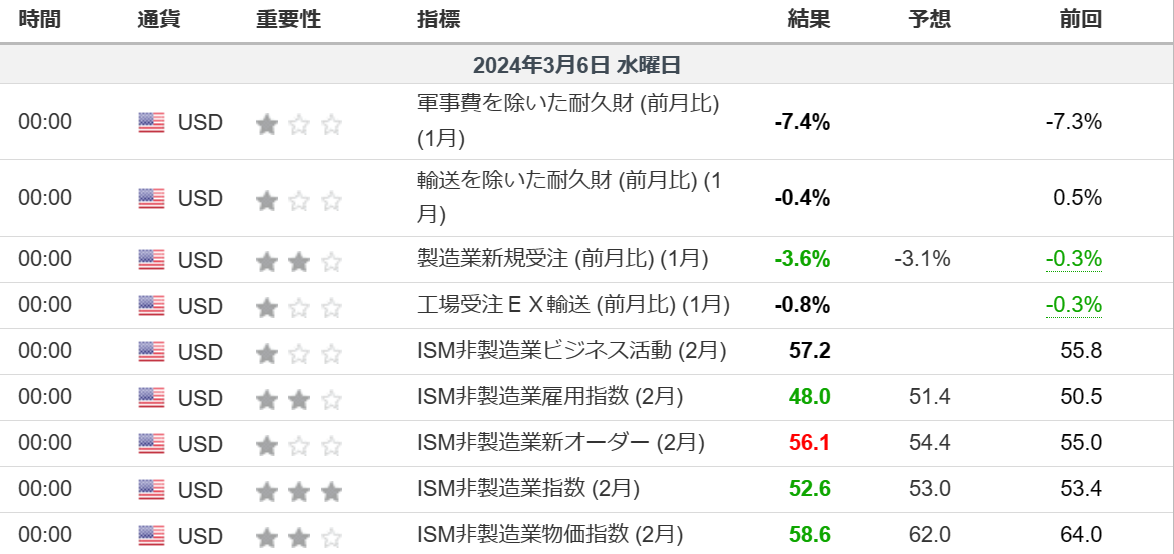 昨日はISM非製造業影響指数の発表がありました。総合指数はやや下振れ発表直後は米ドルは売られましたが詳細見ると、ビジネス活動や新規受注は上がっており決して悪い結果というわけではなく徐々に買い戻される動きとなりました。サービス業はいまだ堅調さを見せています。