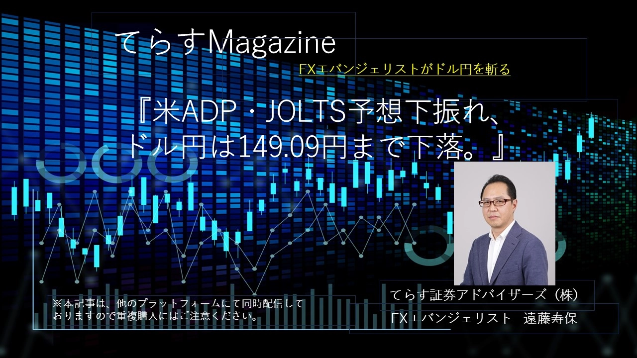米ISM非製造業景況指数予想下振れで、ドル円一時149.70円まで下落。