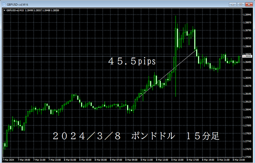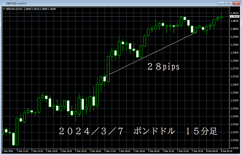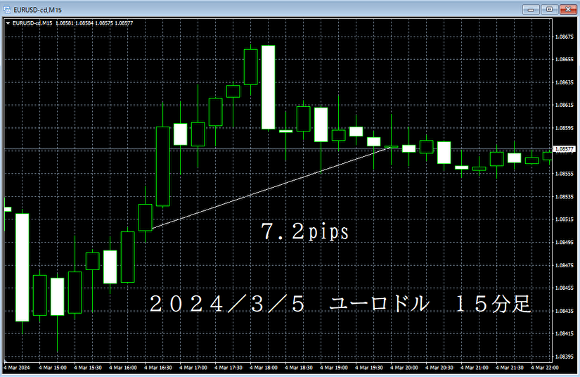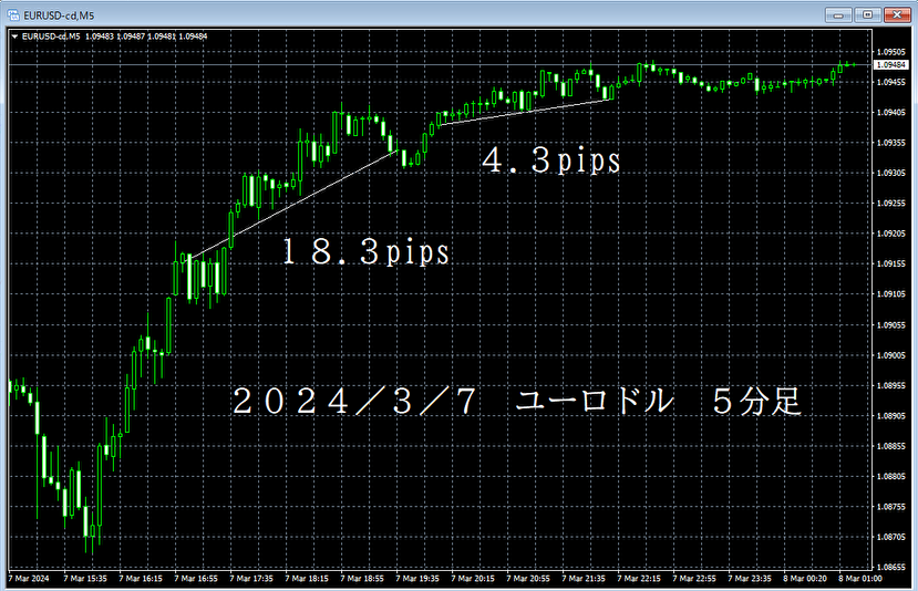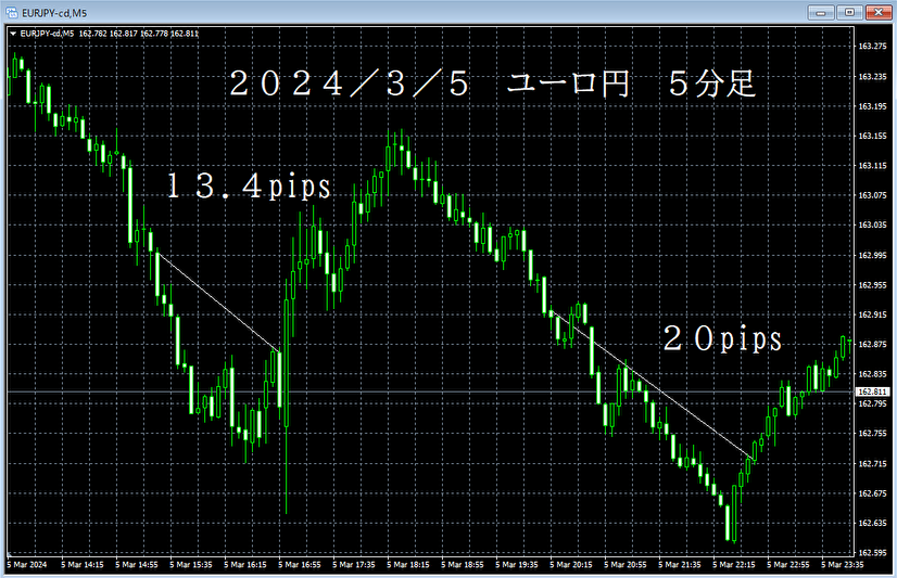 特に1分足や5分足などのスキャルピングではこのレンジブレイクは強力なトレンドを発生させるので特筆です
