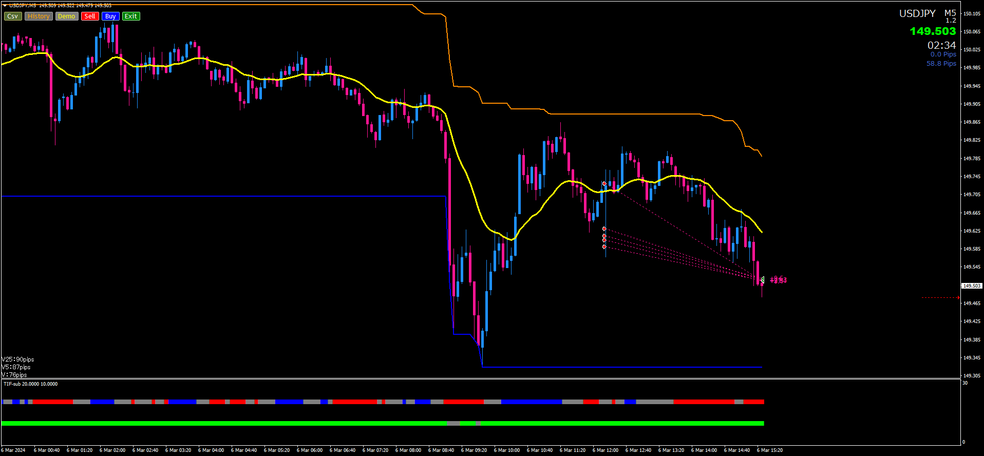 3/06のトレード結果は、ドル円ショートで58pipsでした。
