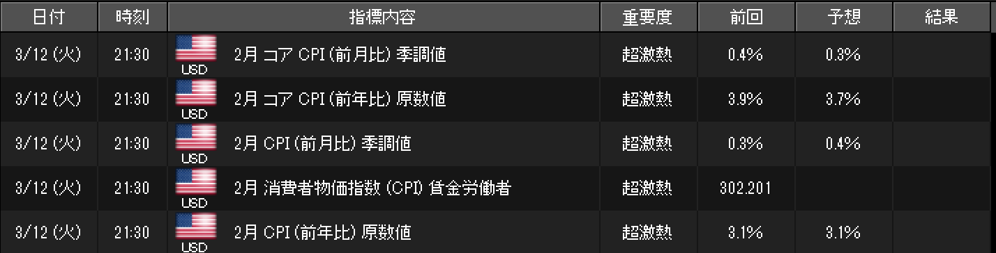 3/12 本日はCPI