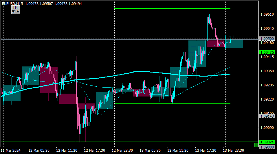 昨日は、朝の戦略で解説していた1.090付近での押し目を待っていたが、そのまま上昇しレジスタンスである1.0950に近いところまで来てしまったのでノートレード。