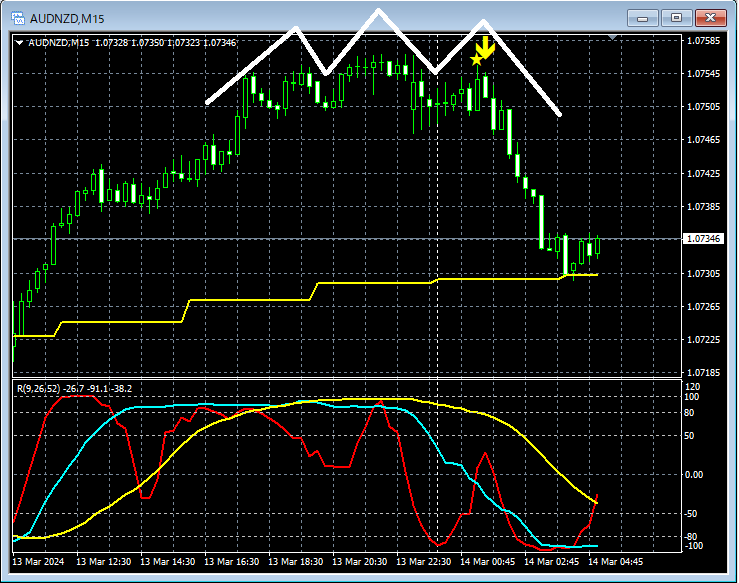 この例から、三尊に注目したトレード手法とmBDSRのサインとの親和性の高さがうかがえる。