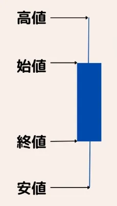 ローソク足:始・終・高・安の4つの価格を1つ線で表示するもの