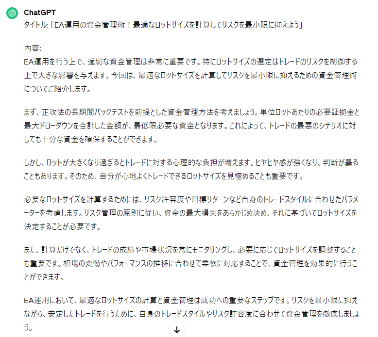 3/19【ChatGPT】EA運用の資金管理術!最適なロットサイズを計算してリスクを最小限に抑えよう