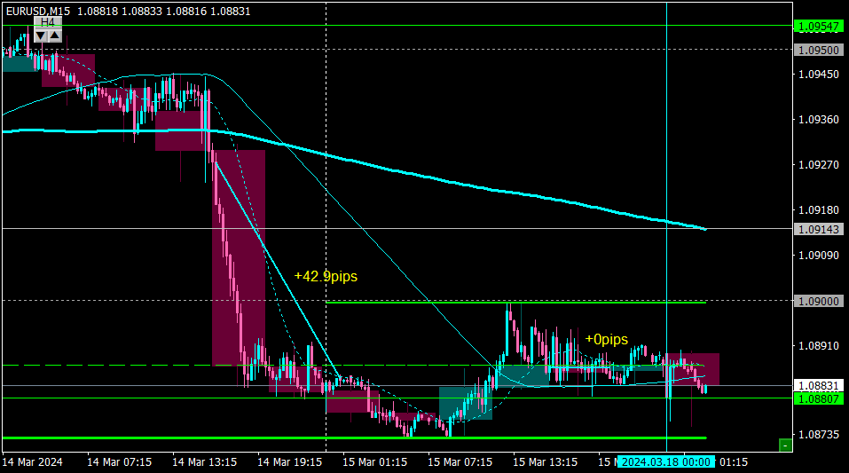 ただ週末ということもあってか、大きな値動きはなく建値でイグジット。0pips