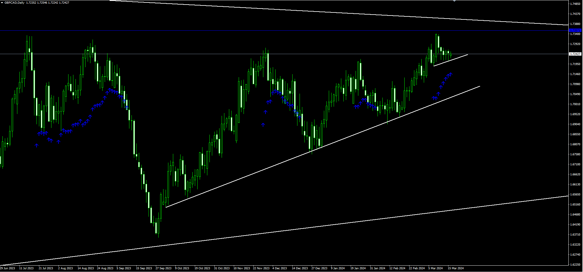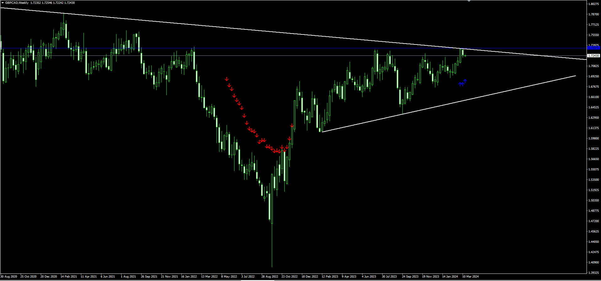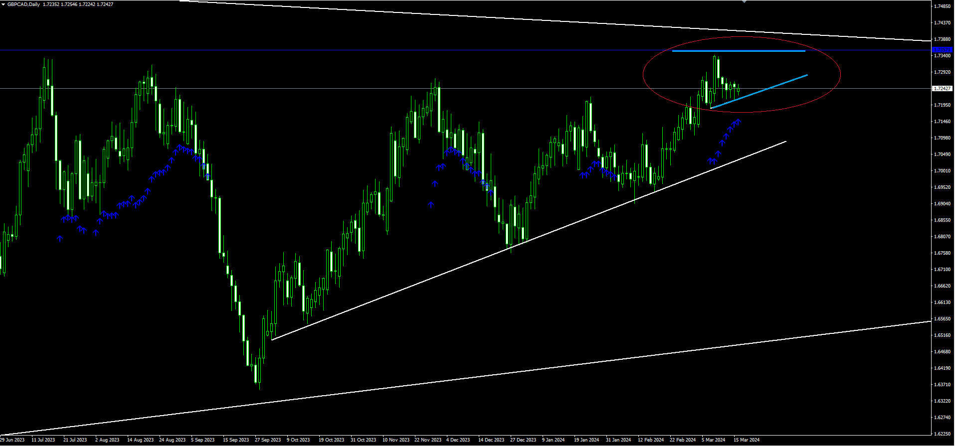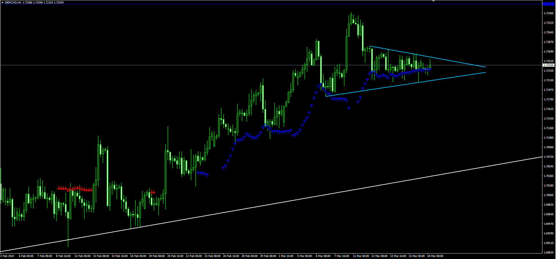 月足では矢印がでていないので、レンジ(三角持ち合い)ですね!