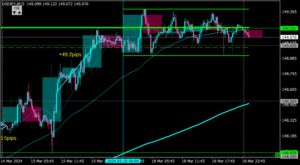 昨日は週足高値のある149.0付近で浮動したのでノートレード。