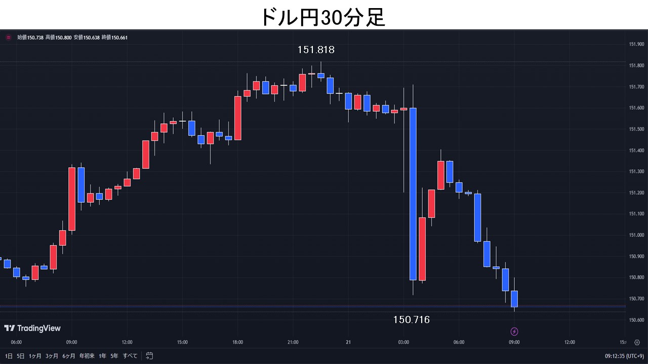 FOMC据置。ドル円は、日銀利上げ観測記事で一時150.71円まで下押し。