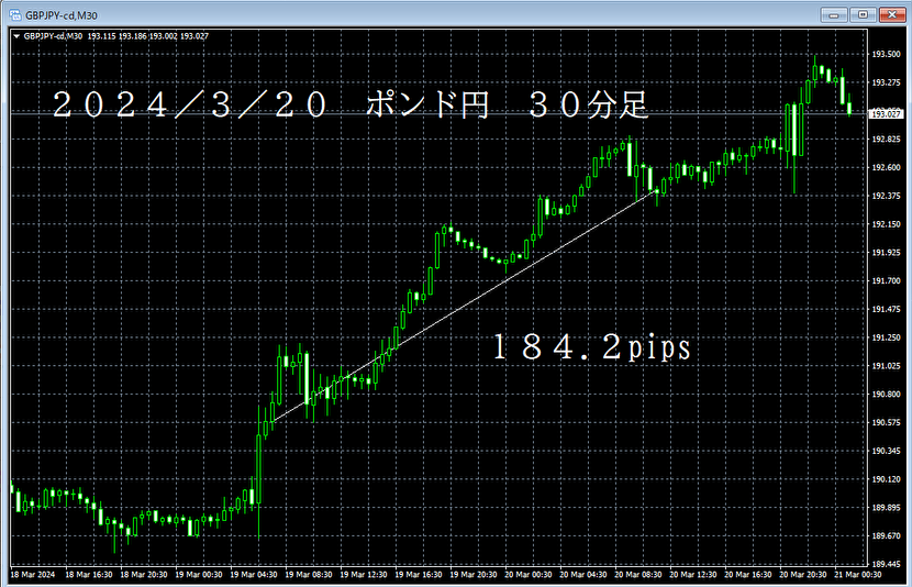 とある日のポンド円の同じ場所付近での定点成績となります