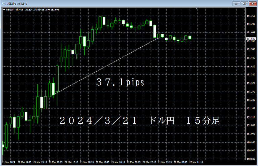 また、手法部分にあたる移動平均線などのテクニカル指標はここではお見せできないため非表示となっています