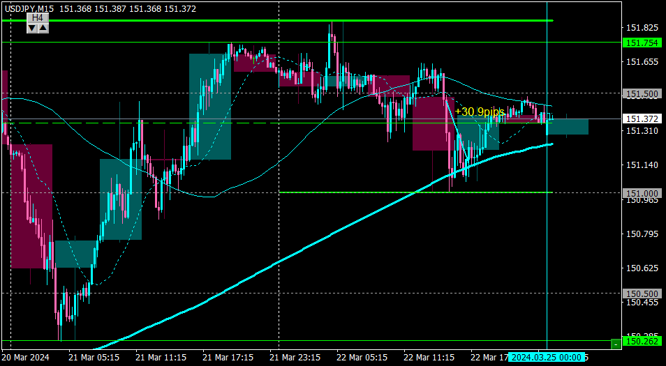 サポートになりそうなH4MAを下抜けなかったためイグジット。+30.9pips