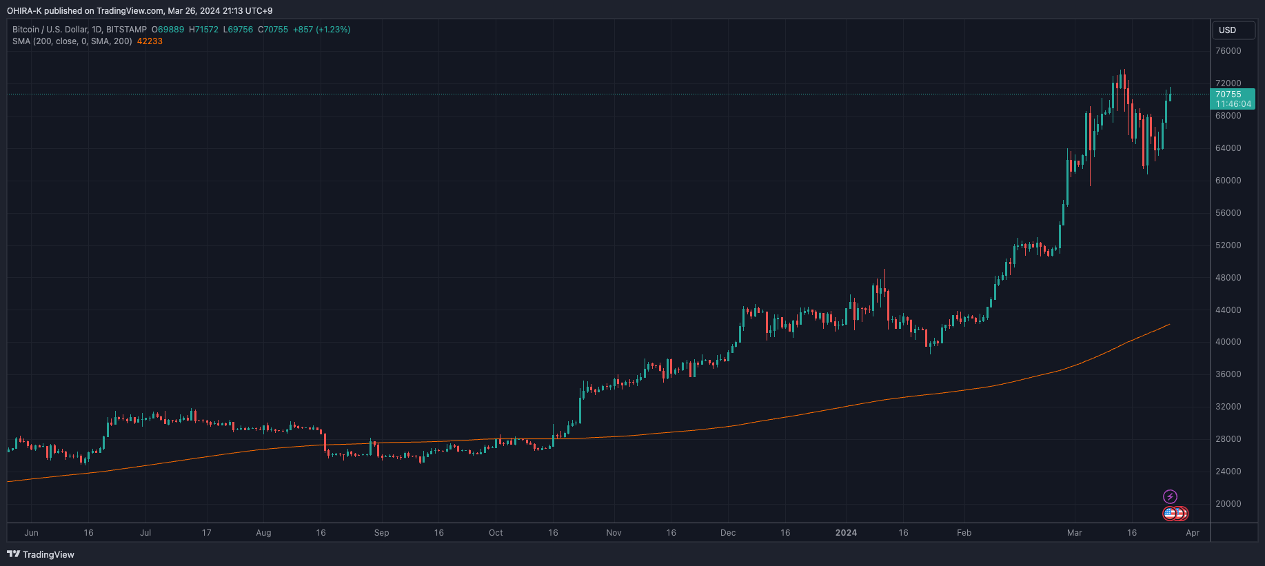 ビットコインはここ3週間大きな値動きとなっており、74000ドル(1100万円)~63000(950万円)ドルで推移をしています。