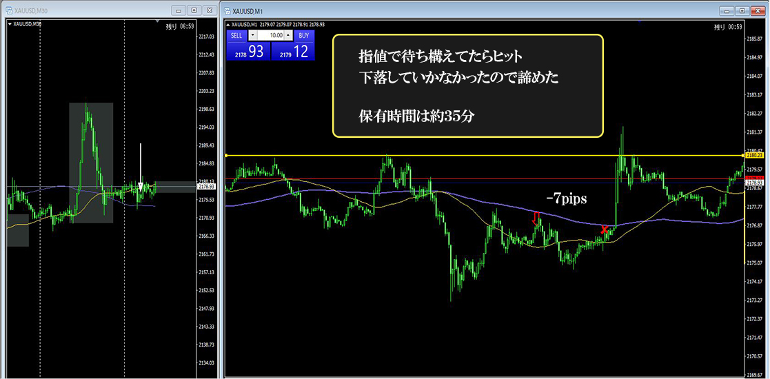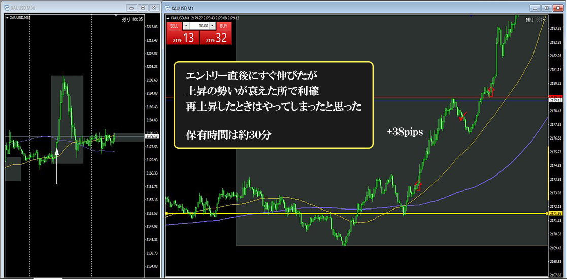 初回のトレードで利確分が無かったらここは取り逃してました。