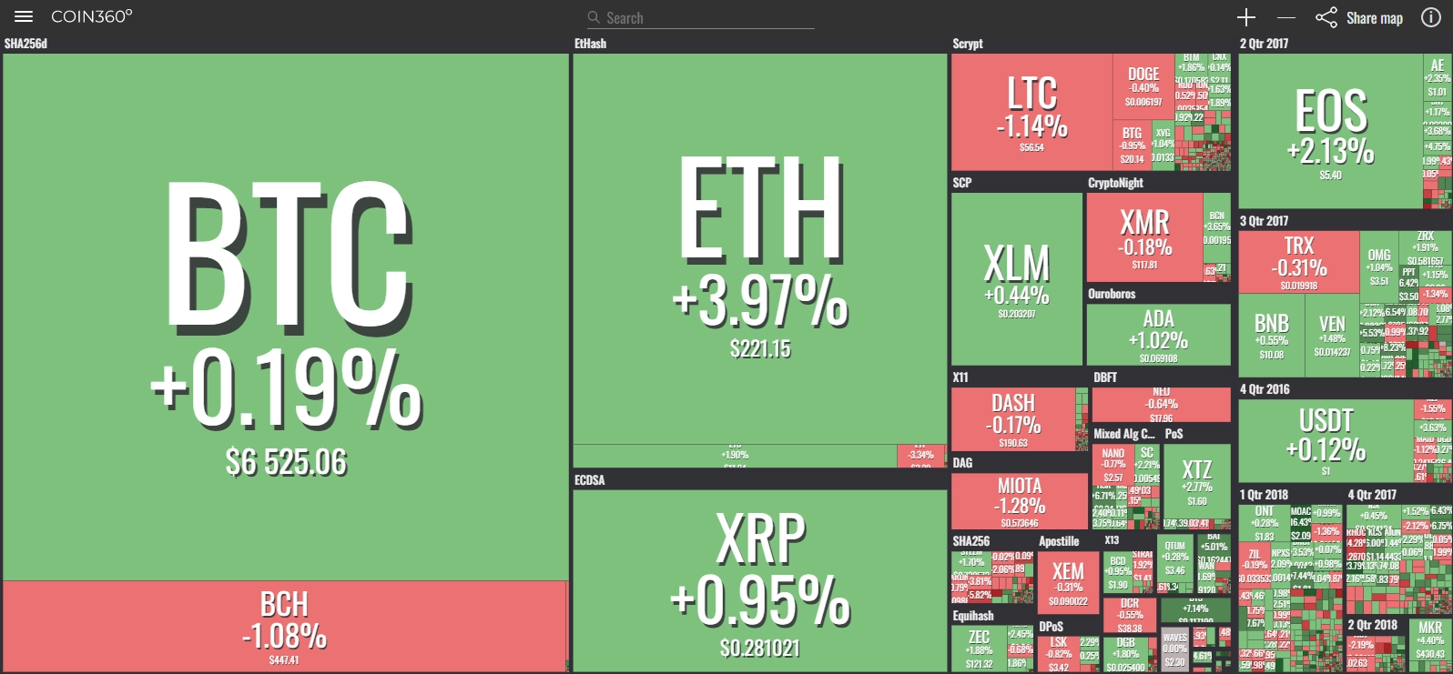 coinmarketcap(コインマーケットキャップ)のサイトから、ドミナンス(各銘柄が仮想通貨全体の時価総額に占めるパーセンテージ)を定点観測していきます。仮想通貨全般が下方向に大きく動き出している相場状況を受け、毎日更新することとし、仮想通貨業界を俯瞰および転換期を早期に発見することを目的とします。