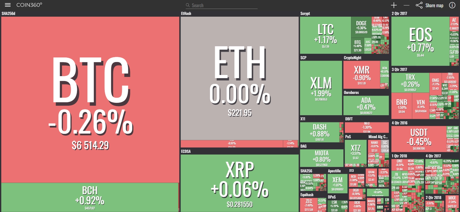 coinmarketcap(コインマーケットキャップ)のサイトから、ドミナンス(各銘柄が仮想通貨全体の時価総額に占めるパーセンテージ)を定点観測していきます。仮想通貨全般が下方向に大きく動き出している相場状況を受け、毎日更新することとし、仮想通貨業界を俯瞰および転換期を早期に発見することを目的とします。