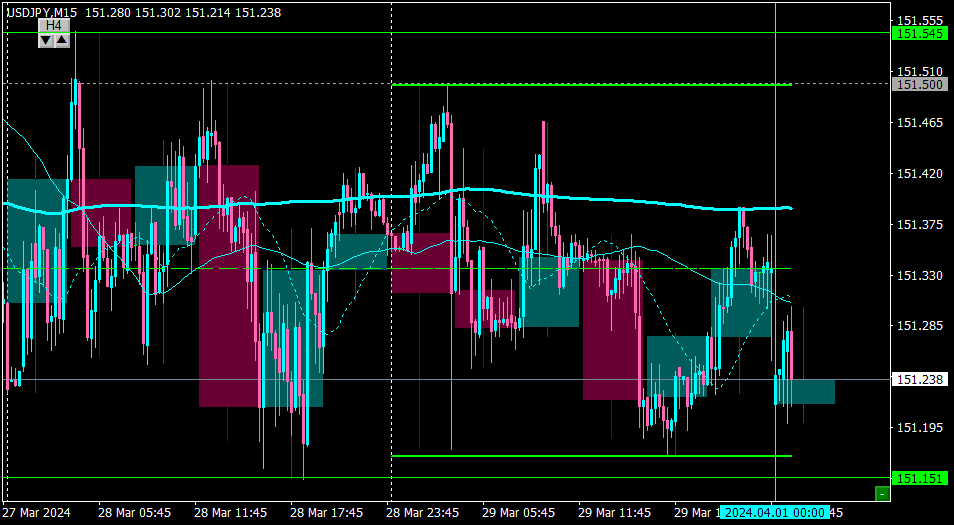 〇前日のトレード・USDJPY ドル円(15分足)先週の金曜は、強いと思われたサポート150.50を割り込んできたので、シナリオ変更しショート。ロング勢の損切りも巻き込んで大きく下げた。+71pips