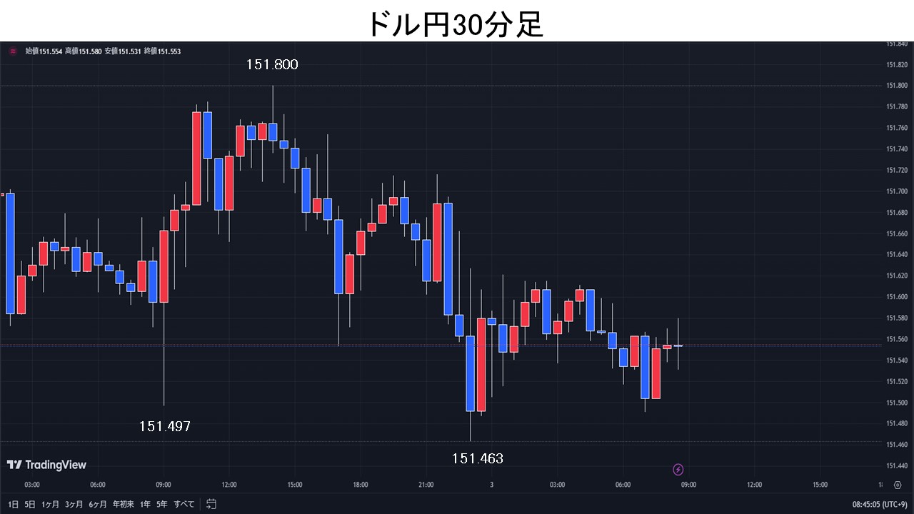 ドル円、151円台半ばから後半で小動き。米JOLTS予想上振れも反応薄。