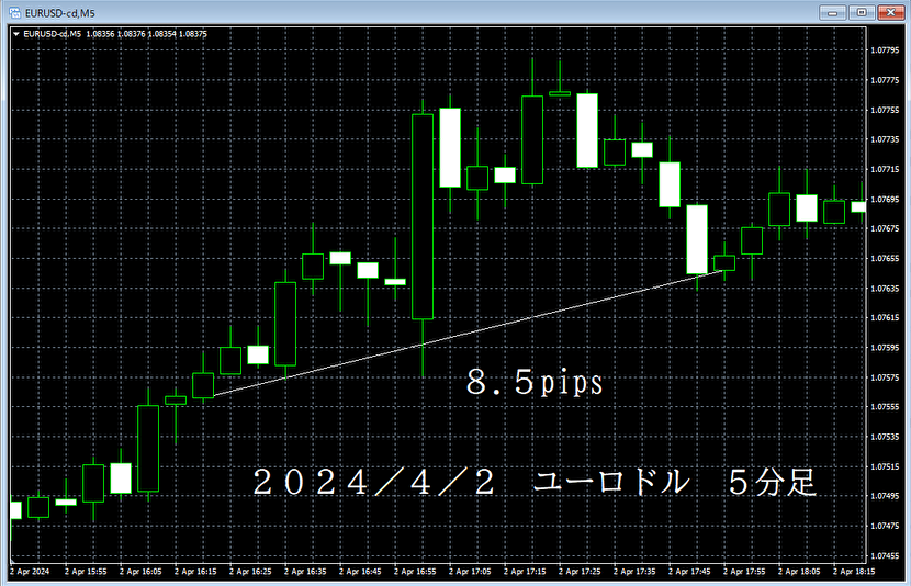 特に1分足や5分足などのスキャルピングではこのレンジブレイクは強力なトレンドを発生させるので特筆です