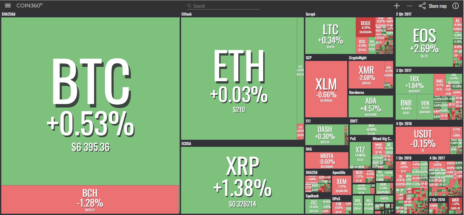coinmarketcap(コインマーケットキャップ)のサイトから、ドミナンス(各銘柄が仮想通貨全体の時価総額に占めるパーセンテージ)を定点観測していきます。仮想通貨全般が下方向に大きく動き出している相場状況を受け、毎日更新することとし、仮想通貨業界を俯瞰および転換期を早期に発見することを目的とします。